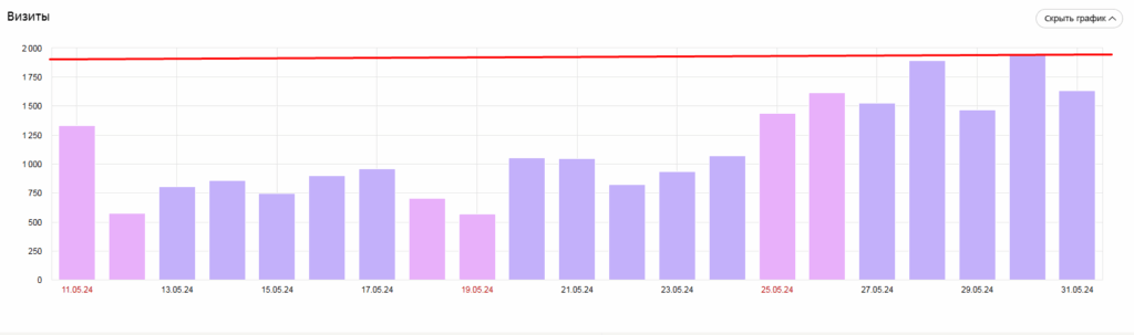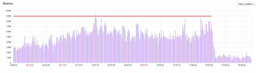 Вот наглядная демонстрация того, что было с трафиком на сайте до нашего прихода: