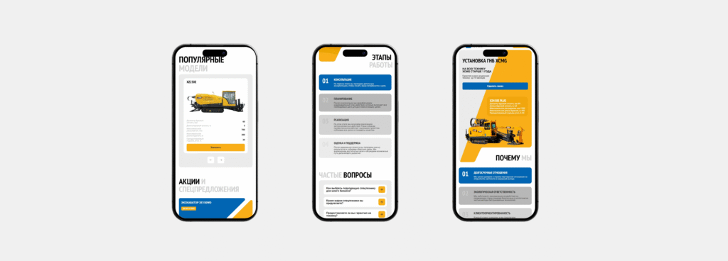 Технически сайт реализован на WordPress + Elementor, но за этим простым сочетанием стоит продуманная архитектура. Мы создали конструктор лендингов, где каждая модель техники представлена отдельной страницей, собранной из готовых блоков: карточки продукта, характеристики, фотографии, аргументы продаж, CTA-блоки, секции сравнения.