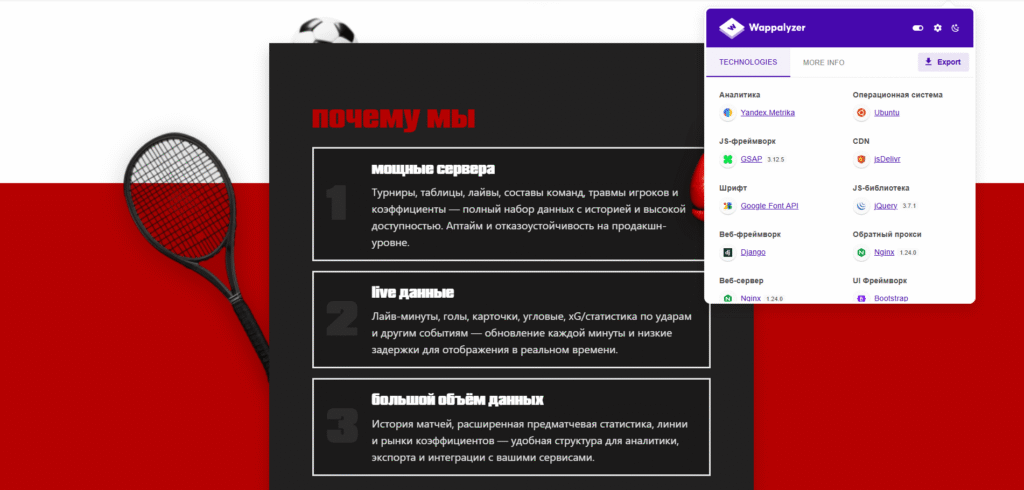 К нам обратились с задачей создать профессиональный программный интерфейс, предоставляющий доступ к полному массиву данных о спортивных мероприятиях. Проект должен был стать технологической платформой для сервисов, работающих со статистикой, прогнозами и спортивной аналитикой в реальном времени.