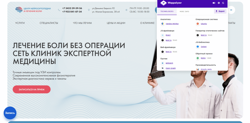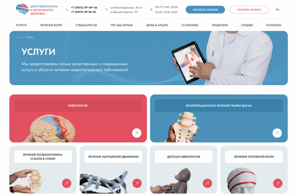 Клиент — Центр нейроортопедии и лечения боли в Тюмени, сеть клиник, которая помогает людям избавиться от боли и вернуть качество жизни. Команда специалистов сочетает неврологию, ортопедию, реабилитацию и доказательную медицину.