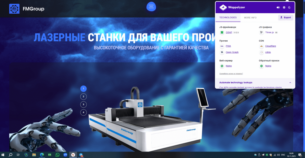 Наш клиент — FMGroup, производитель лазерных станков, который обратился к нам за созданием современного и эффектного лендинга.