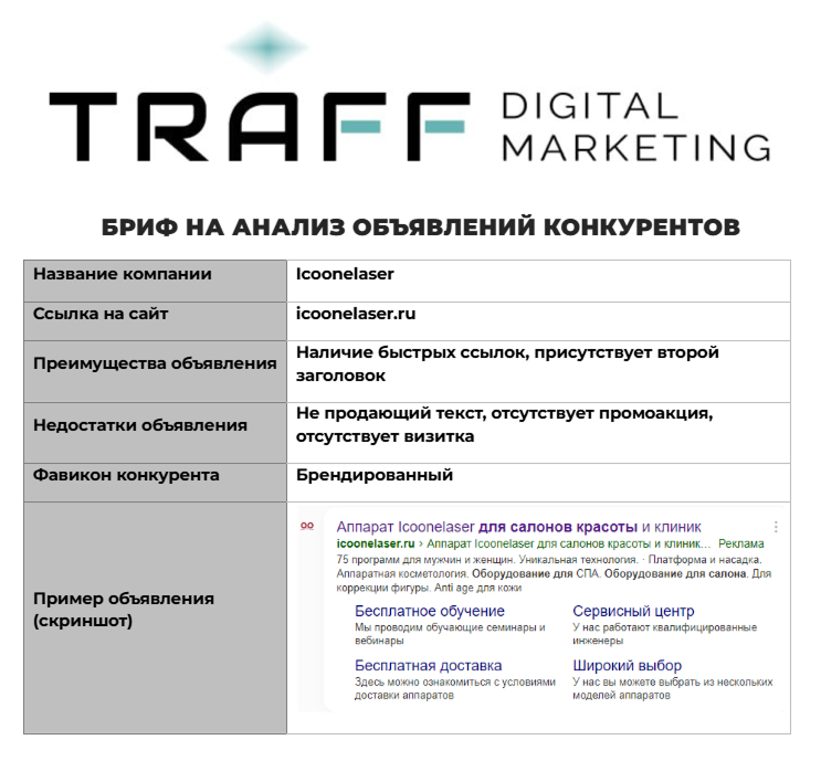 • Бриф на анализ объявлений конкурентов помог понять, какие сообщения работают лучше, а какие нет.