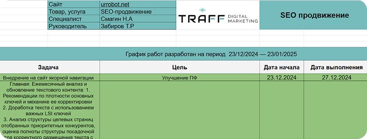 Сайт ООО «ЮРРОБОТ» на момент начала проекта имел низкие позиции в поисковых системах, ограниченные органические визиты и недостаточную видимость для целевых запросов. Основные проблемы включали: