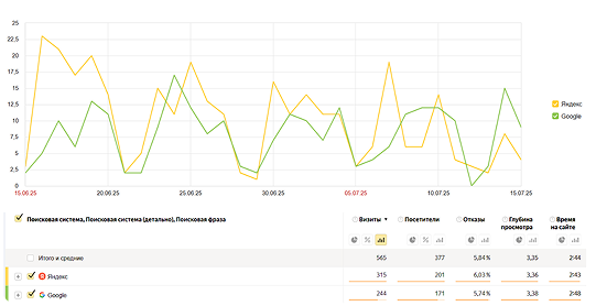 и Яндекс, что подтверждается стабильными показателями трафика.