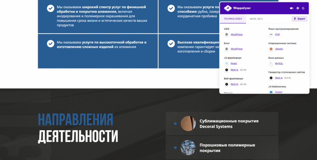 Сайт разработан на Next.js с интеграцией CMS WordPress, что обеспечивает стабильную работу и удобство управления контентом. Мы реализовали адаптивную верстку для корректного отображения на любых устройствах, оптимизировали скорость загрузки страниц и внедрили простую систему редактирования продукции и текстов. Пользовательский интерфейс спроектирован так, чтобы администрирование было интуитивно понятным и не требовало технических навыков.