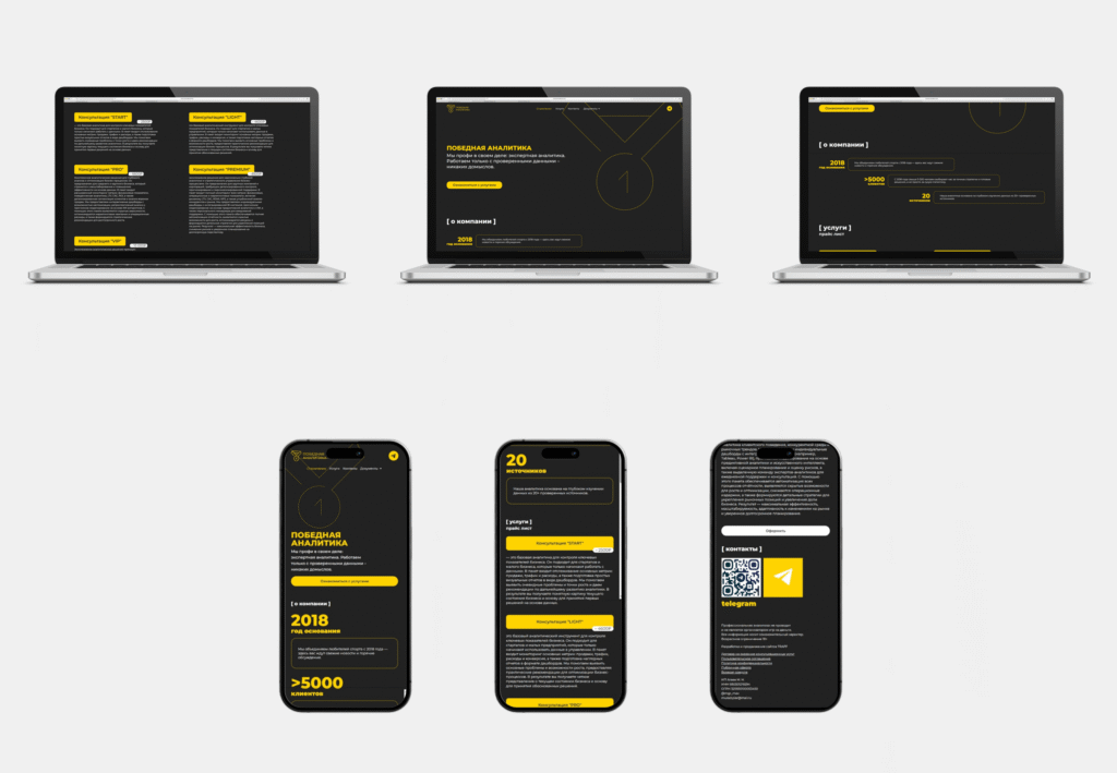 Наш клиент — компания «Победная аналитика», сервис, который объединяет любителей спорта и предлагает экспертную аналитику на основе проверенных данных. Перед нами стояла задача создать лендинг, который не просто рассказывает о цифрах и показателях, а формирует ощущение уверенности и профессионализма, транслирует идею точности, объективности и системного подхода. Важно было подчеркнуть опыт компании, её масштаб и выстроить коммуникацию так, чтобы посетитель чувствовал, что перед ним серьёзный аналитический проект, а не очередной шаблонный сервис прогнозов.