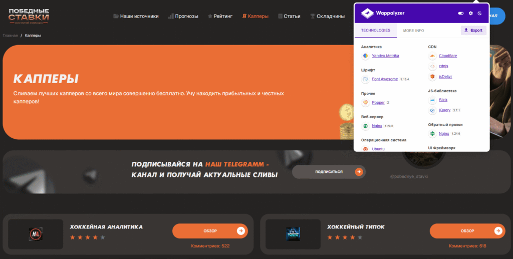 Наш клиент — сервис спортивных прогнозов Победные Ставки, который обучает пользователей находить честных и прибыльных капперов, а также публикует слив платной информации — бесплатно, открыто и без лишнего шума.