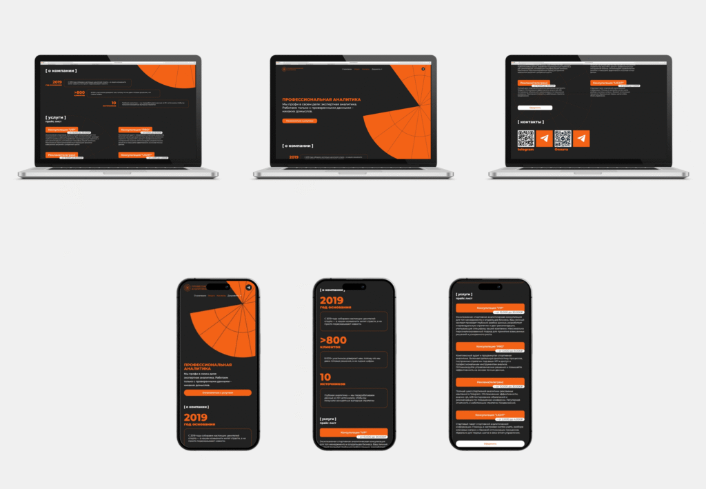 Проект получился лаконичным, уверенным и визуально сильным — именно таким, каким и должен быть сайт для платформы с профессиональной аналитикой.