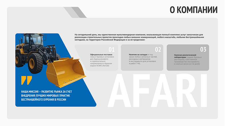 Ниже мы представили часть работ, которые мы выполняли для компании АФАРИ.